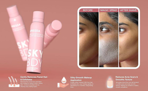🎀🎀اسپری پودری اسکین بادی اصل نمایان کننده مو و پک تیغ Sknbody